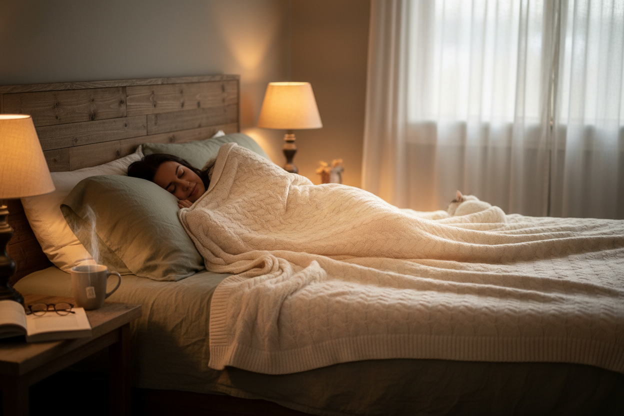 Within minutes, your blanket will begin warming evenly throughout. Enjoy soothing, consistent heat for sleep, relaxation, or muscle relief.